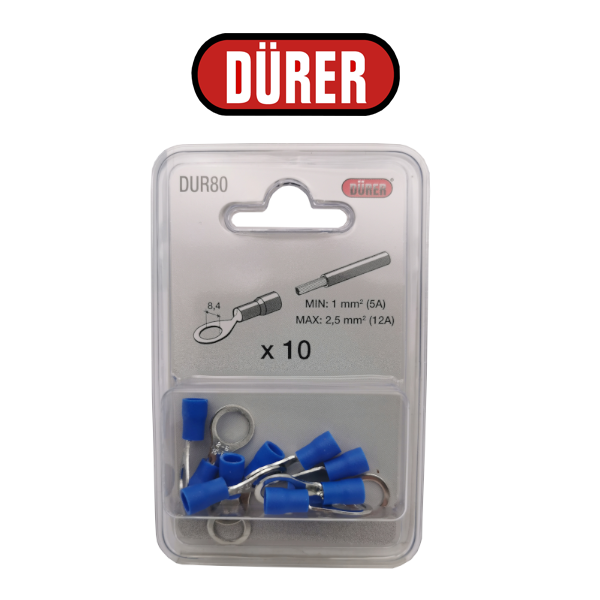 Découvrez notre lot de 10 cosses rondes bleues 8,4 mm femelle de la marque DÜRER, conçues pour garantir des connexions électriques fiables et durables. Ces cosses isolées de haute qualité sont parfaites pour une multitude d’applications électriques et électroniques, notamment dans l’automobile, le bricolage, et l’industrie.